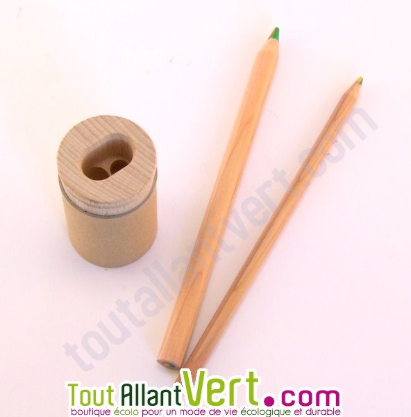 Le bois est un produit naturel très résistant. Celui de ce taille-crayon est non traité avec des produits chimiques. Le réservoir est en carton recyclé. Très solide, il recevra tous les copeaux.