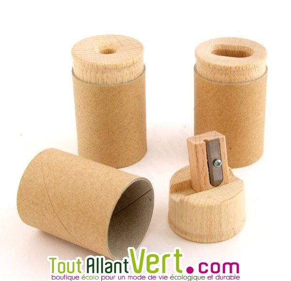 Taille crayon bois avec réservoir en carton recyclé- Couvercle en hêtre non traité