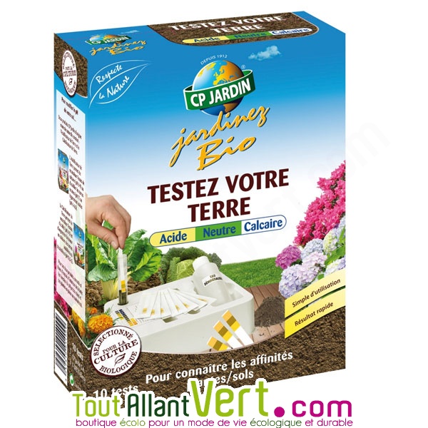 Ce kit qui contient 10 test languettes qui vous permettent d'effectuer 10 tests de pH de votre terre. Pour connaître si votre sol est acide, neutre ou calcaire. Utilisable en Agriculture Biologique. CP Jardin, France.