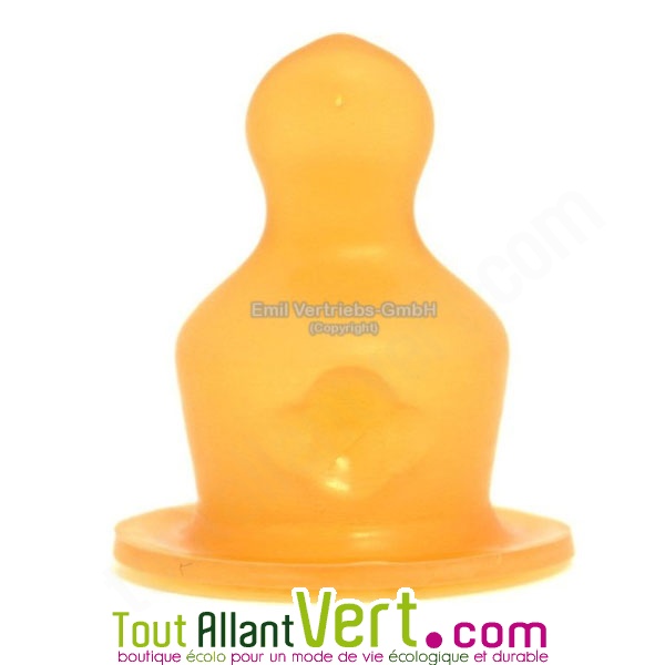 Ces tétines en latex naturel s'adaptent aux biberons en verre de la marque Emil die Flasche.- Valve anti-colique