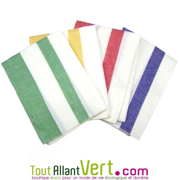 4 Torchons en lin 50 x 70 ligné blanc et couleur