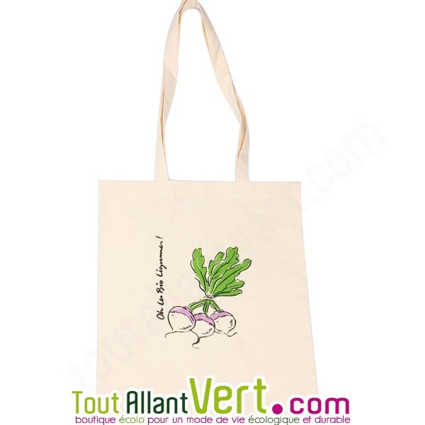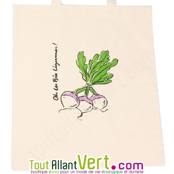 Tote bag, sac en coton bio imprimé Navets.Ce joli sac est en coton bio illustré de Navets "oh les bio fruits!". Très pratiques pour le shopping, les promenades, les sorties, c'est une formidable alternative aux sacs en plastique.