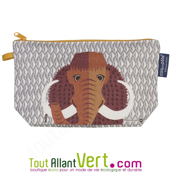 Trousse à crayons Mammouth en coton biologique 22 x 13 cm