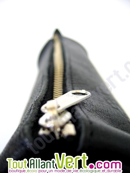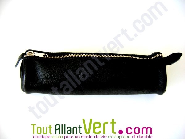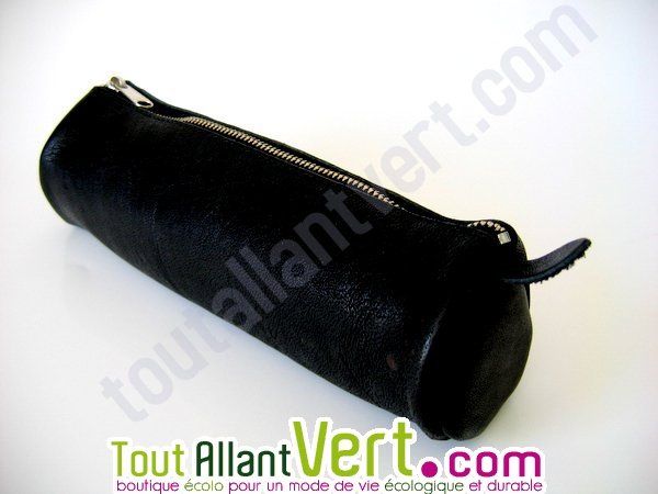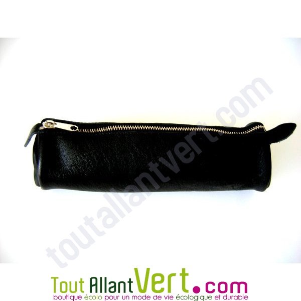 Trousse en cuir ronde, tannée végétale non doublé, couleur noir.- Dimensions: 20 cm x 5,5 cm de diamètre
