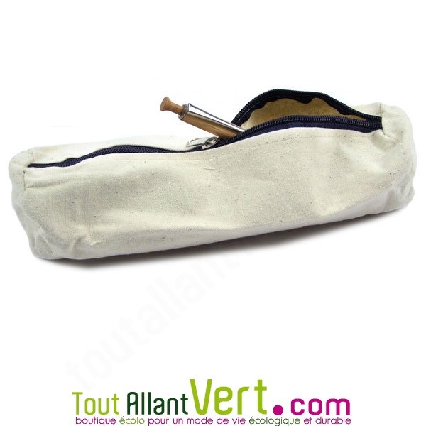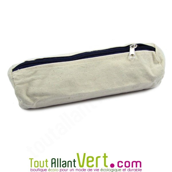 voir les questions/réponses sur ce produitTrousse en coton biologique écrue et issu du commerce équitable.Cette trousse est écrue. Elle est fermée par une fermeture éclaire bleu foncé.