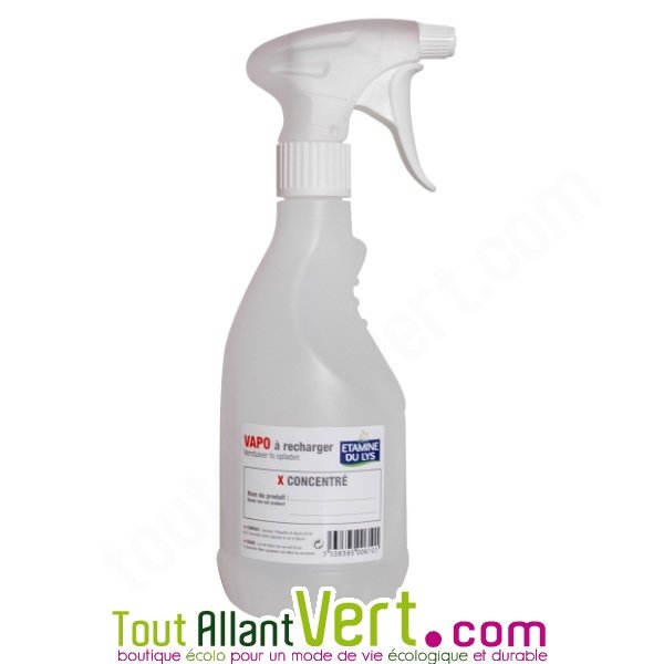 Vaporisateur vide gradué.Ce vaporisateur permet de diluer les nettoyants concentrés d'Etamine du Lys. Il s'utilise plusieurs fois et se recharge !
